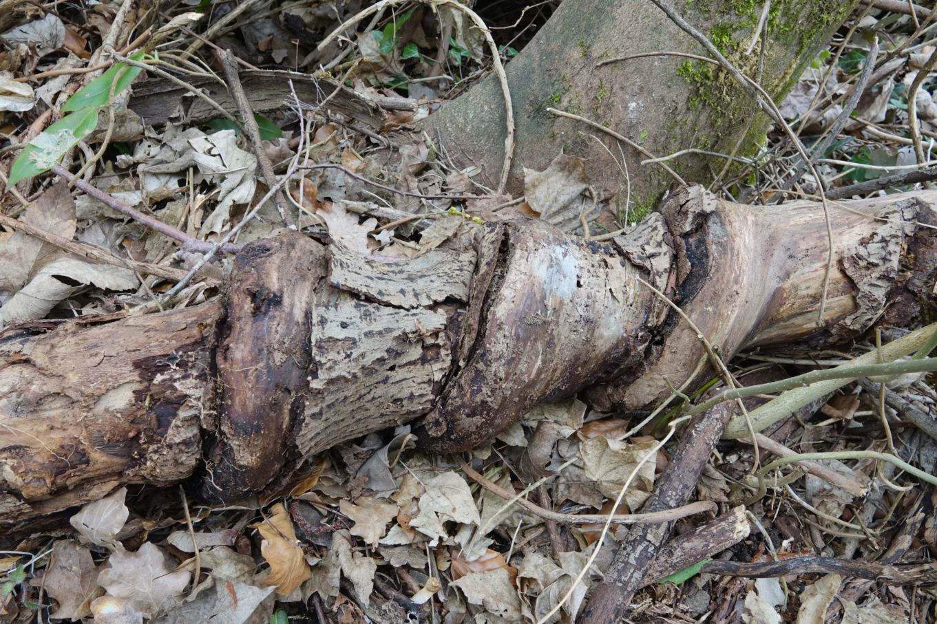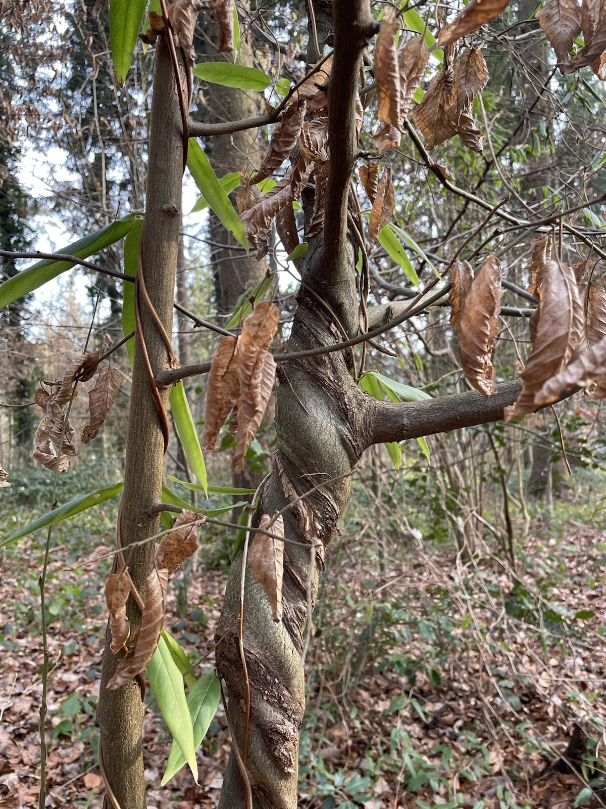 Bild: Spuren vom Henrys Geissblatt. Eine Schlingpflanze die andere Pflanzen würgt (ähnlich wie die Würgefeige).
